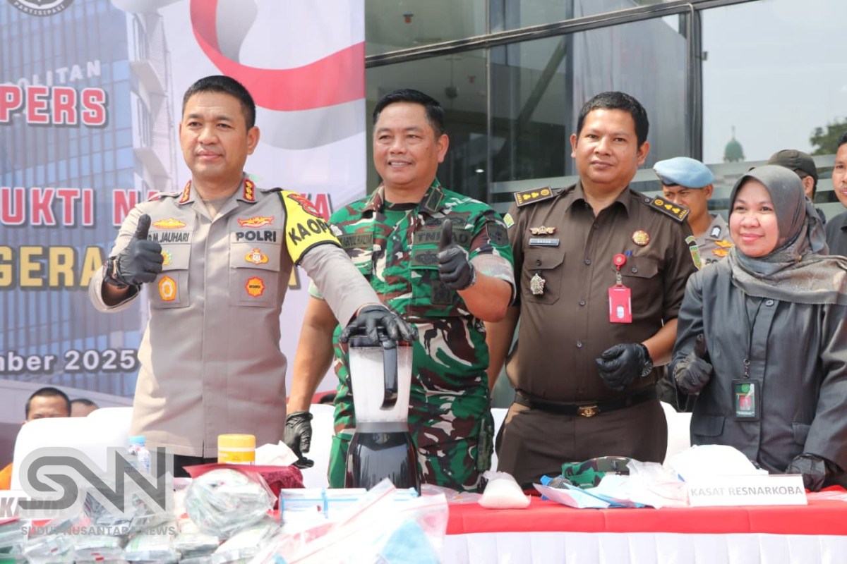 Tangerang, sudutnusantaranews.com – Polres Metro Tangerang Kota menggelar konferensi pers sekaligus pemusnahan barang bukti narkotika hasil pengungkapan kasus tindak pidana narkotika dan obat berbahaya oleh Satresnarkoba dan Polsek jajaran. Kegiatan berlangsung di halaman Mapolres, Rabu (24/9/2025).