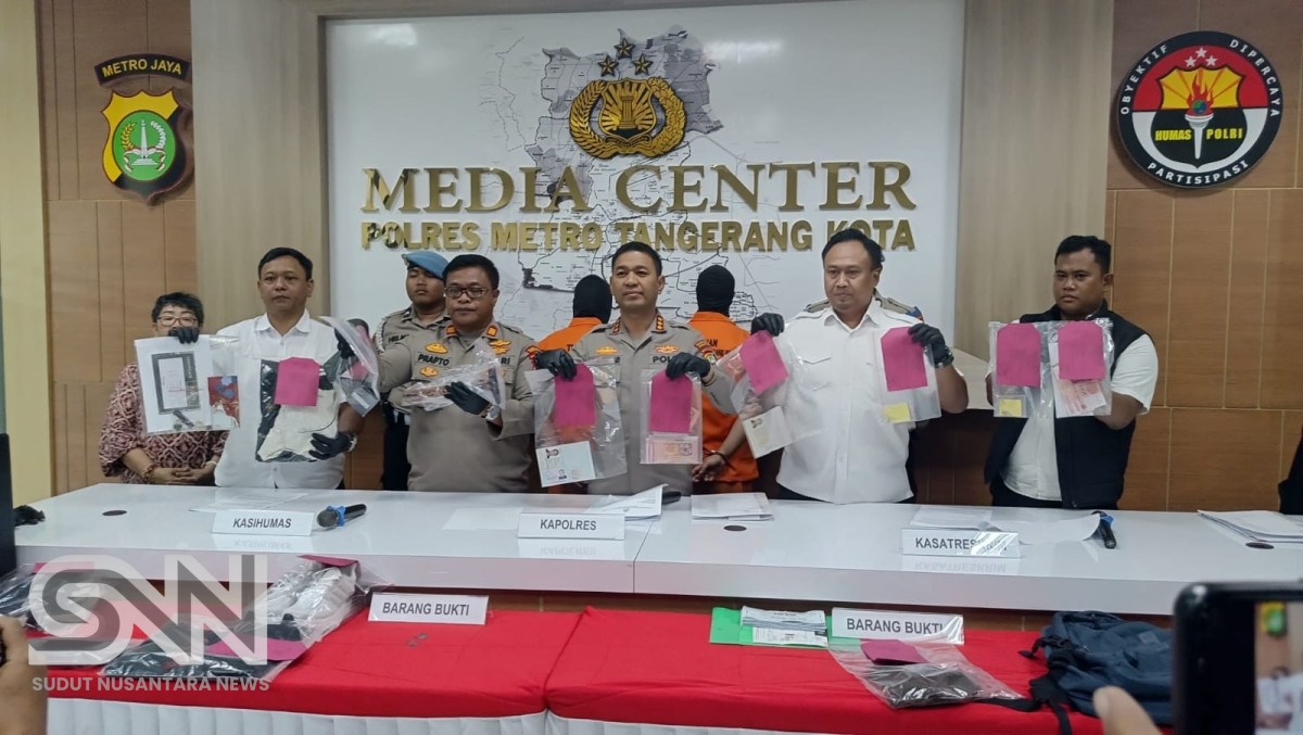 Penangkapan para pelaku tersebut disampaikan dalam Konferensi Pers yang di gelar di ruang Media Center Polres Metro Tangerang Kota dipimpin oleh Kapolres Kombes Pol Raden Muhammad Jauhari. Selasa, 9 September 2025.