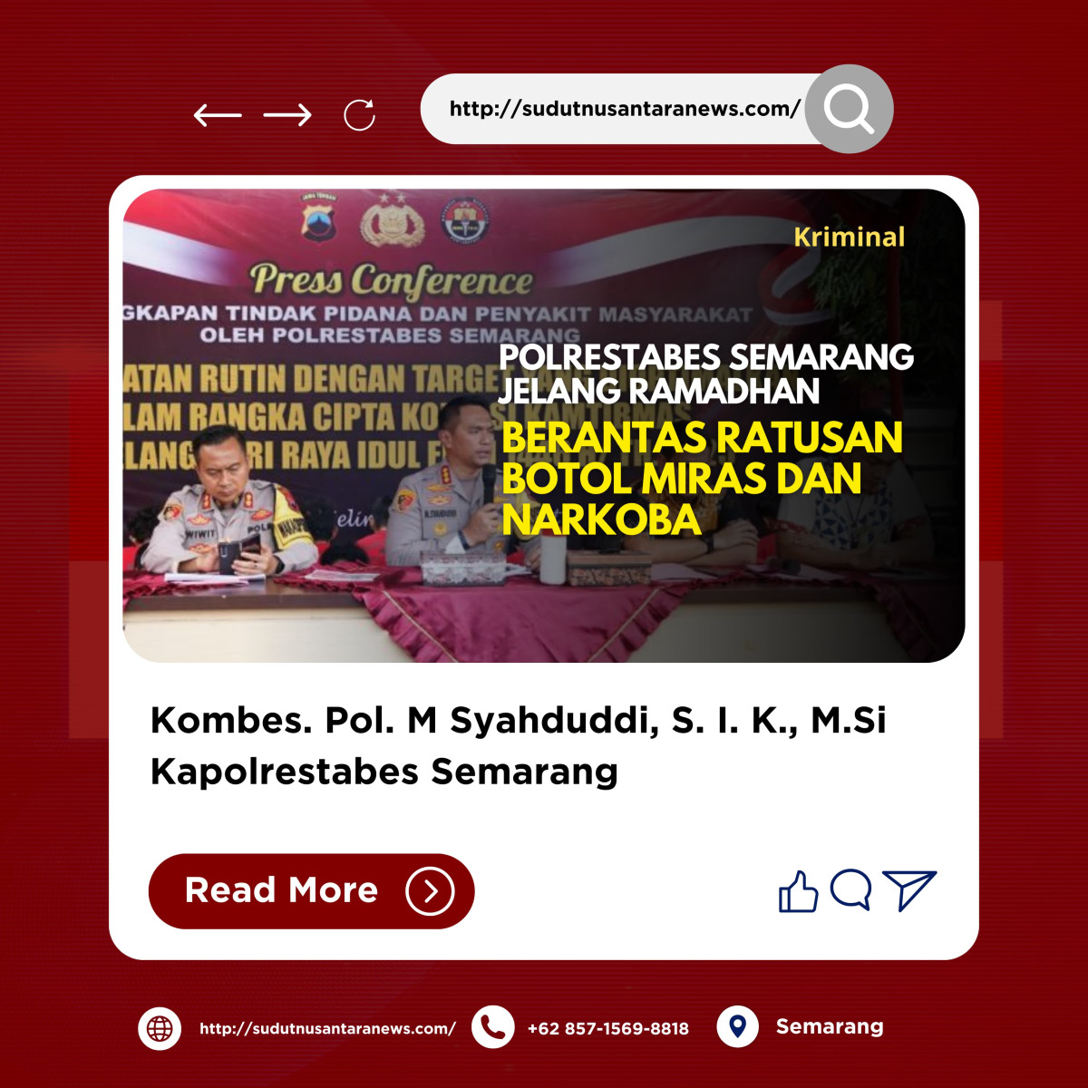 Semarang, sudutnusantaranews.com – Menjelang bulan suci Ramadan 1446 Hijriyah, Kepolisian Resor Kota Besar Semarang, Polda Jawa Tengah, menggelar Kegiatan Rutin Yang Dioptimalkan (KRYO) sejak 20 Januari hingga 20 Februari 2025.
