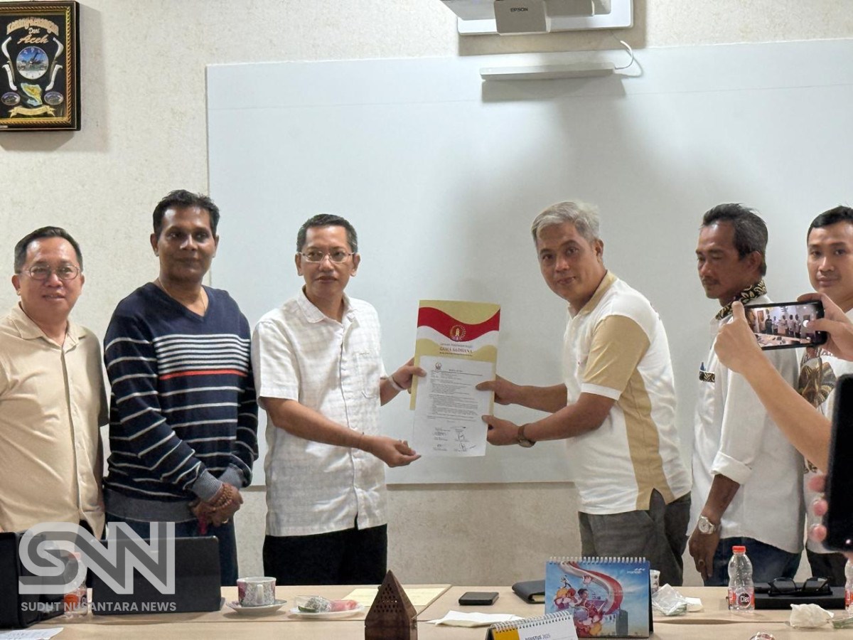 David Sanjaya Ketua terpilih menyerahkan berkas berita acara musyawarah daerah pada 23 Juli lalu, beserta membawa 35 jajaran kepengurusan DPD Gema Sadhana Banten.