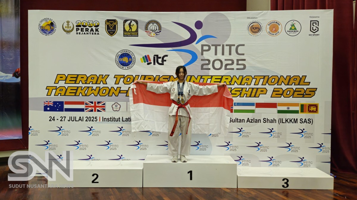 Kota Tangerang, sudutnusantaranews.com – Atlet taekwondo asal Kota Tangerang, Eugenia Viorent Dwi Lianto, berhasil menyabet medali emas dalam ajang Perak Tourism International Taekwondo Championship yang digelar di Malaysia pada 24–27 Juli 2025.