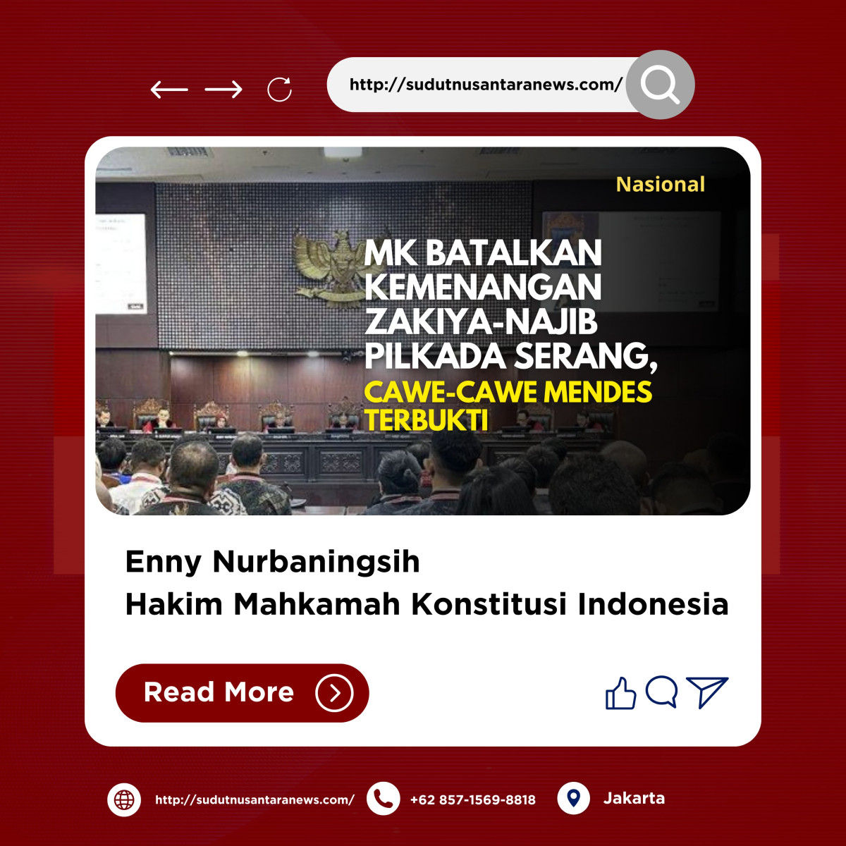 Pelanggaran itu menyebabkan keberpihakan kepala desa yang terjadi secara masif di sejumlah desa yang tersebar di kecamatan di Kabupaten Serang,” kata Hakim Konstitusi Enny Nurbaningsih dalam pembacaan putusan, Senin (24/2/2025).