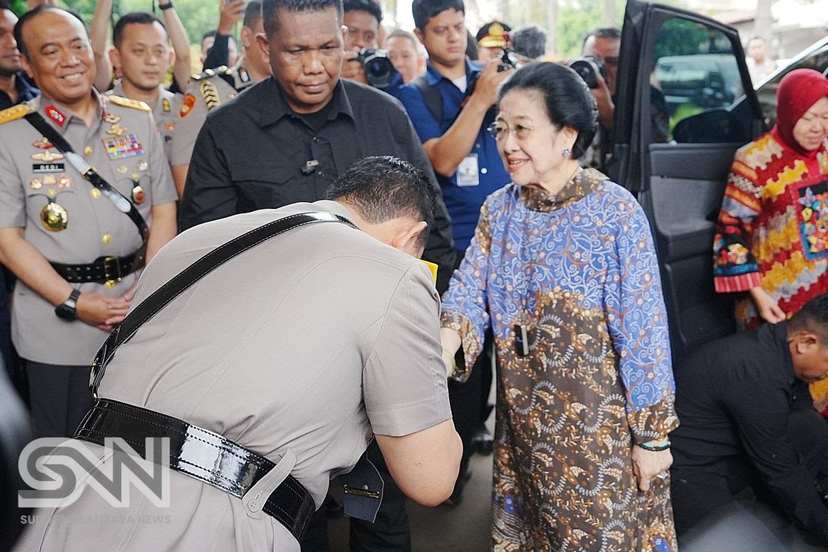 Jenderal Sigit tampak menunggu kedatangan Megawati di rumah Meri Hoegeng di Pesona Khayangan, Depok, Jawa Barat, Senin (23/6). Saat Megawati tiba, Sigit langsung memberi hormat sambil membungkuk mencium tangan Ketua Umum PDIP seturun dari mobil. Mega didampingi putrinya Puan Maharani.