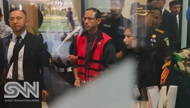 Jakarta, sudutnusantaranews.com – Mendikbudristek 2019-2024 Nadiem Makarim mengenakan rompi pink dengan tangan terborgol. Kejagung menetapkannya sebagai tersangka kasus dugaan korupsi pengadaan chromebook yang merugikan keuangan negara hingga Rp 1,98 triliun.