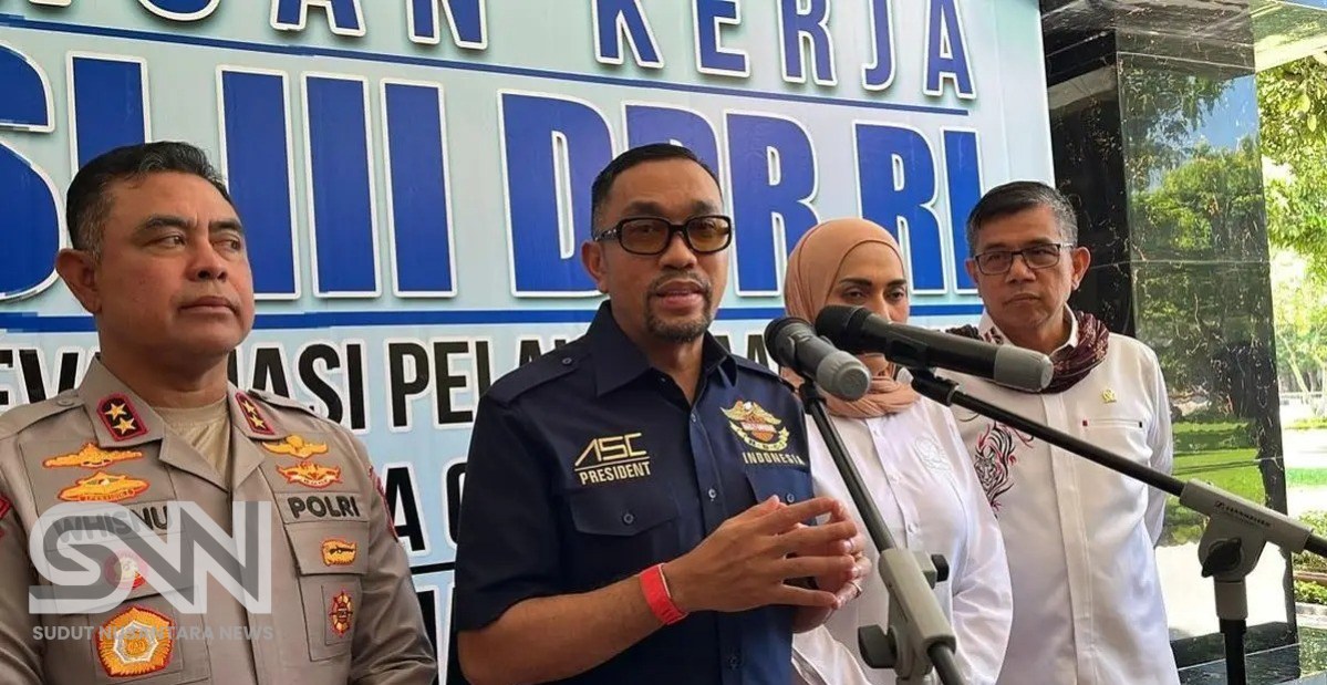 Sahroni dalam kunjungan kerja di Polda Sumatera Utara pada Jumat (22/8/2025) membalas kritik dan seruan demo untuk membubarkan DPR yang viral di media sosial.