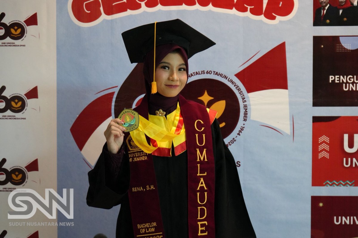 Rena Mahasiswi Fakultas Hukum Unej usai diwisuda (26/7/2025). (Dok. Istimewa)