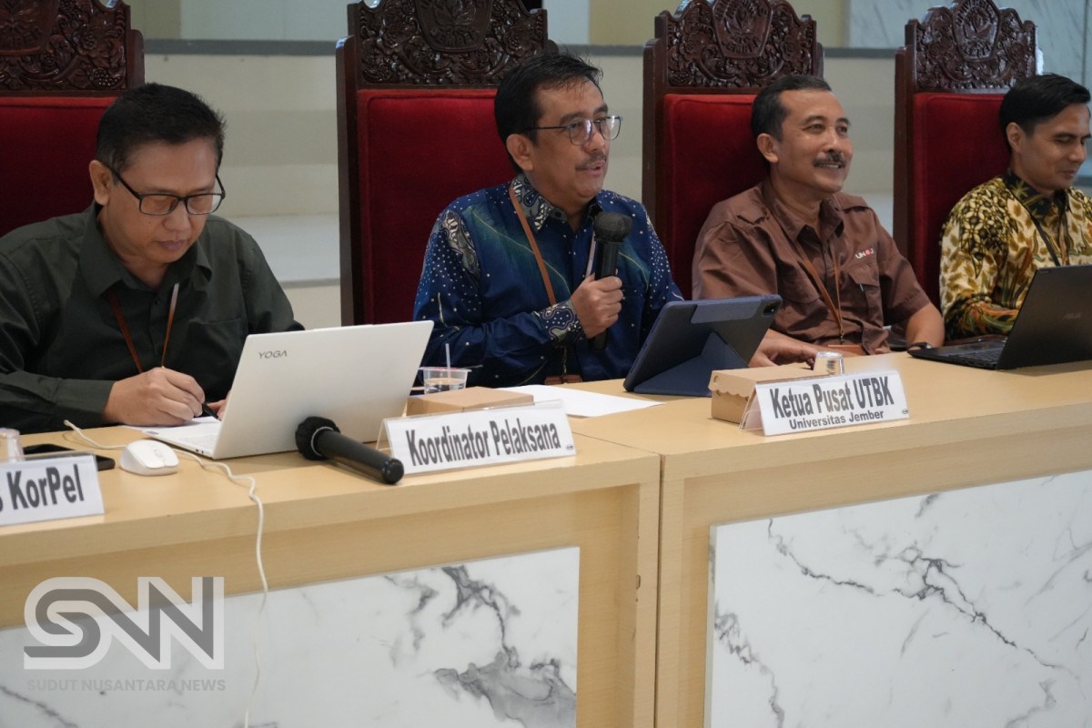 Jember, sudutnisantaranews.com — Ketua Pusat Ujian Tulis Berbasis Komputer (UTBK) Universitas Jember (UNEJ), Prof. Slamin berpesan kepada Penanggung Jawab Lokasi (PJL) dan pengawas UTBK Seleksi Nasional Berdasarkan Tes (SNBT) 2025 agar bersikap tegas namun tetap humanis. Arahan ini disampaikan oleh Prof. Slamin dalam kegiatan Pengarahan dan Pembekalan Bagi PJL dan Pengawas UTBK SNBT di gedung Soetardjo. Hari itu hadir 81 orang PJL dan 684 pengawas. (15/04/2025).