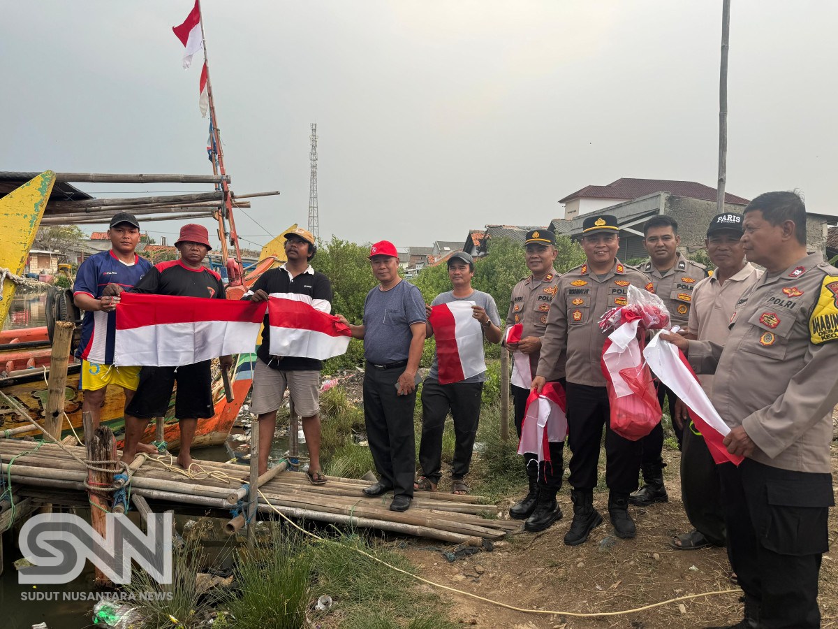 Tangerang, sudutnusantaranews.com — Menjelang Hari Ulang Tahun (HUT) Republik Indonesia ke-80, jajaran Polsek Pakuhaji bersama Aparatur Desa Surya Bahari membagikan ratusan Bendera Merah Putih Berbagai Ukuran kepada para nelayan di Pelabuhan Cituis, Selasa (5/8/2025).