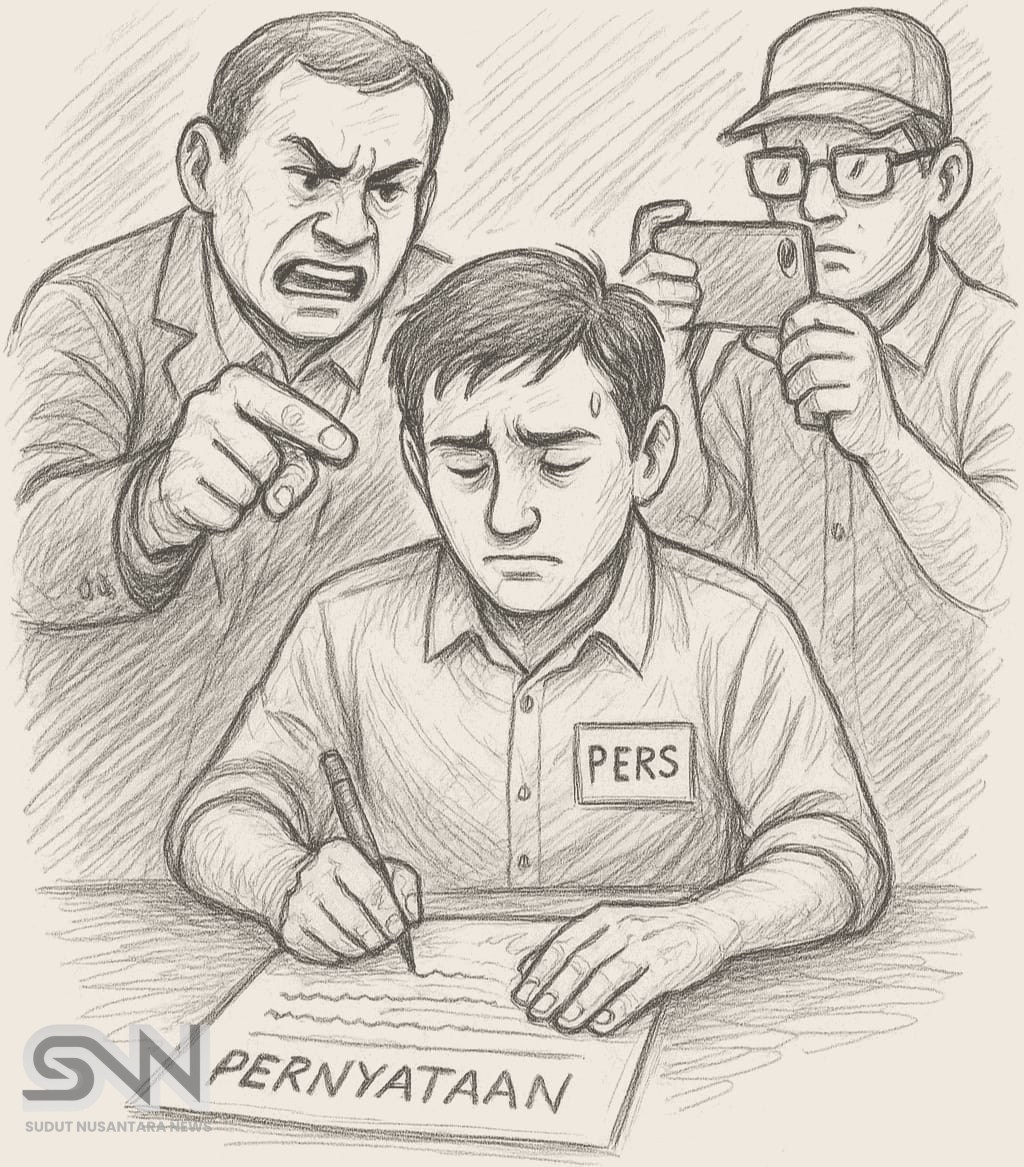 Berdasarkan informasi yang diperoleh, jurnalis SN dipaksa menandatangani surat pernyataan permohonan maaf atas karya jurnalistik yang telah diterbitkan. Ia juga ditekan secara psikologis untuk mengakui bahwa pemberitaan tersebut salah, serta diharuskan menyebutkan identitas narasumber.