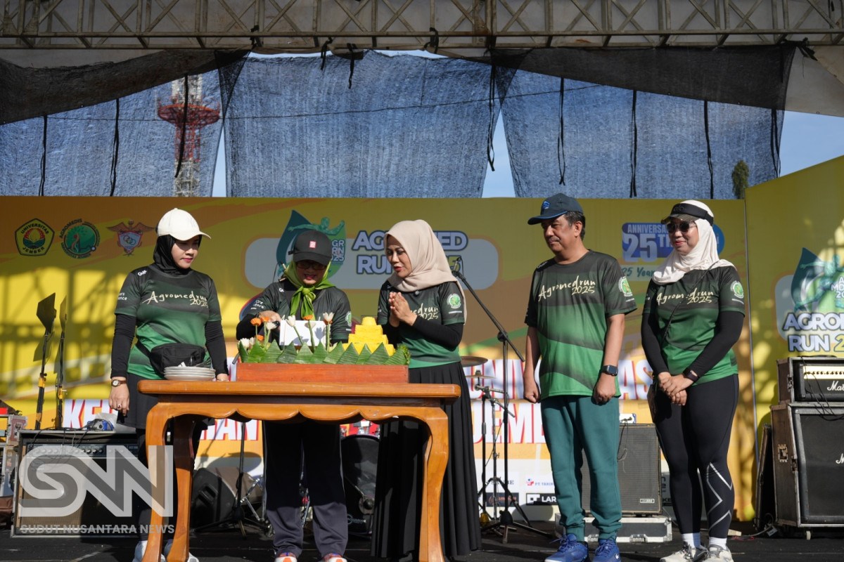 Jember, sudutnusantaranews.com – Dalam rangka merayakan Dies Natalis ke-25, Fakultas Kedokteran Universitas Jember (FK UNEJ) menggelar kegiatan Agromedrun sejauh 5 kilometer yang mengambil start dan finish di Alun-Alun Kota Jember, Minggu pagi (27/04/2025). Kegiatan yang berlangsung meriah ini diikuti oleh ribuan peserta dari berbagai wilayah di Jawa Timur, dan dilanjutkan dengan senam agromedis yang bertujuan untuk mempromosikan gaya hidup sehat kepada masyarakat.