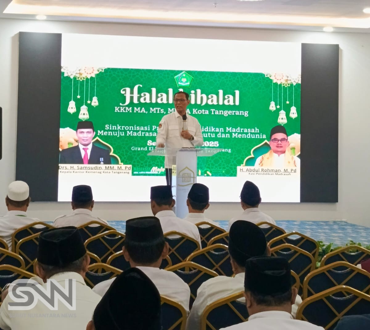 Tangerang, sudutnusantaranews.com – Kementerian Agama Kota Tangerang gelar kegiatan Halal bil Halal dan Sinkronisasi Program Kerja Pendidikan Madrasah Tahun Pelajaran 2025-2026, bertajuk ‘Madrasah Maju, Madrasah Bermutu dan Madrasah mendunia’, di Aula grand El-Hajj, Kecamatan Cipondoh, Senin 21 April 2025.