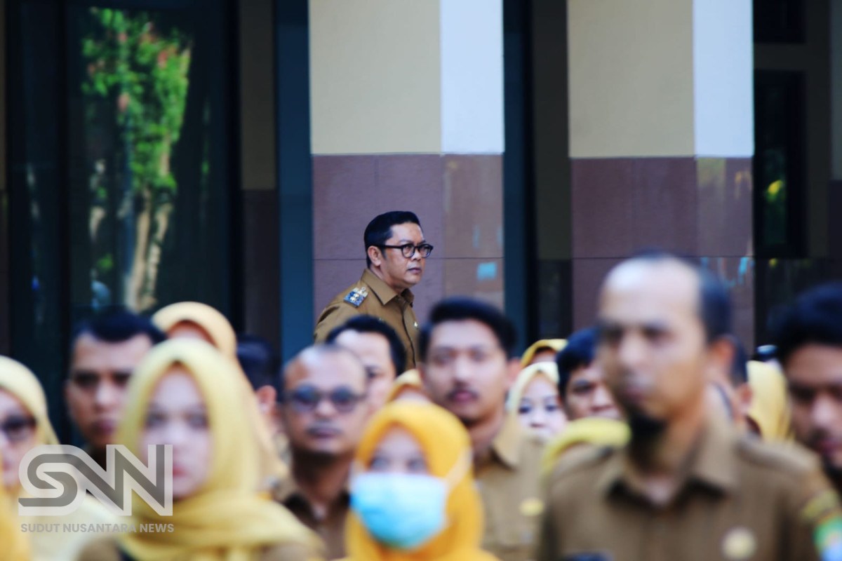 Tangerang, sudutnusantaranews.com – Wakil Wali Kota Maryono yang direncanakan menjadi inspektur upacara pada Apel Pegawai di Lingkup Pemerintah Kota Tangerang, Senin (05/05) secara mendadak mengecek barisan para pegawai yang terlihat masih belum rapi, bahkan Maryono juga menyidak ruangan kerja untuk mengecek para pegawai yang absen apel pagi.