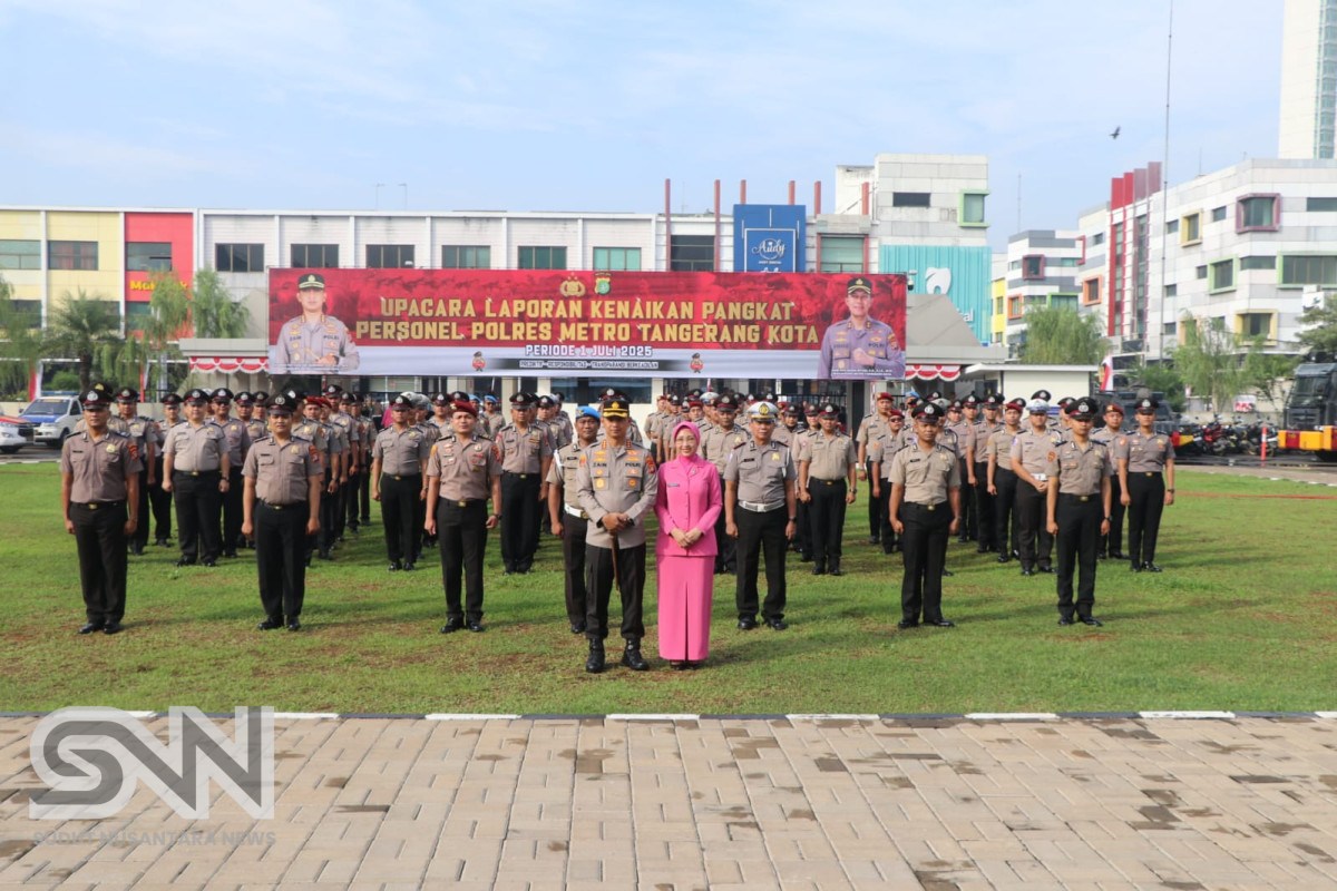 Kenaikan pangkat satu tingkat lebih tinggi periode 1 Juli 2025, Hari Bhayangkara ke-79 itu diberikan kepada 102 anggota Polres Metro Tangerang Kota, Polda Metro Jaya terdiri dari 95 reguler dan 7 pengabdian.