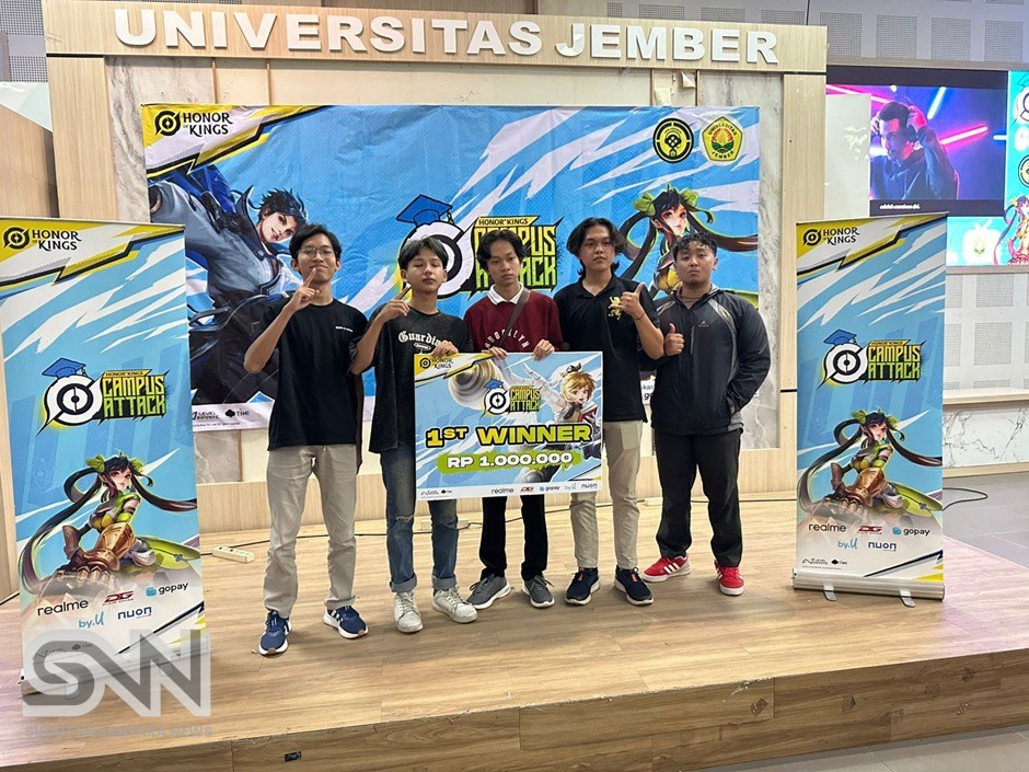Jember, Sudutnusantaranews.com – Tim E-Sport Amoux Forte dari Fakultas Ilmu Komputer (FASILKOM) Universitas Jember (UNEJ) berhasil meraih gelar juara dalam turnamen Honor of Kings: Campus Attack. Dalam ajang ini, tim Amoux Forte yang beranggotakan Lutfi Rosyadi, Arjuna Triandino, Naufel Kinandana, Bagus Setyo Nugroho, dan Deo Rian berhasil keluar sebagai juara pertama setelah menunjukkan performa terbaik mereka sepanjang pertandingan. Sementara itu, Hama Esport menempati posisi kedua, dan Tim W FASILKOM harus puas di peringkat ketiga.