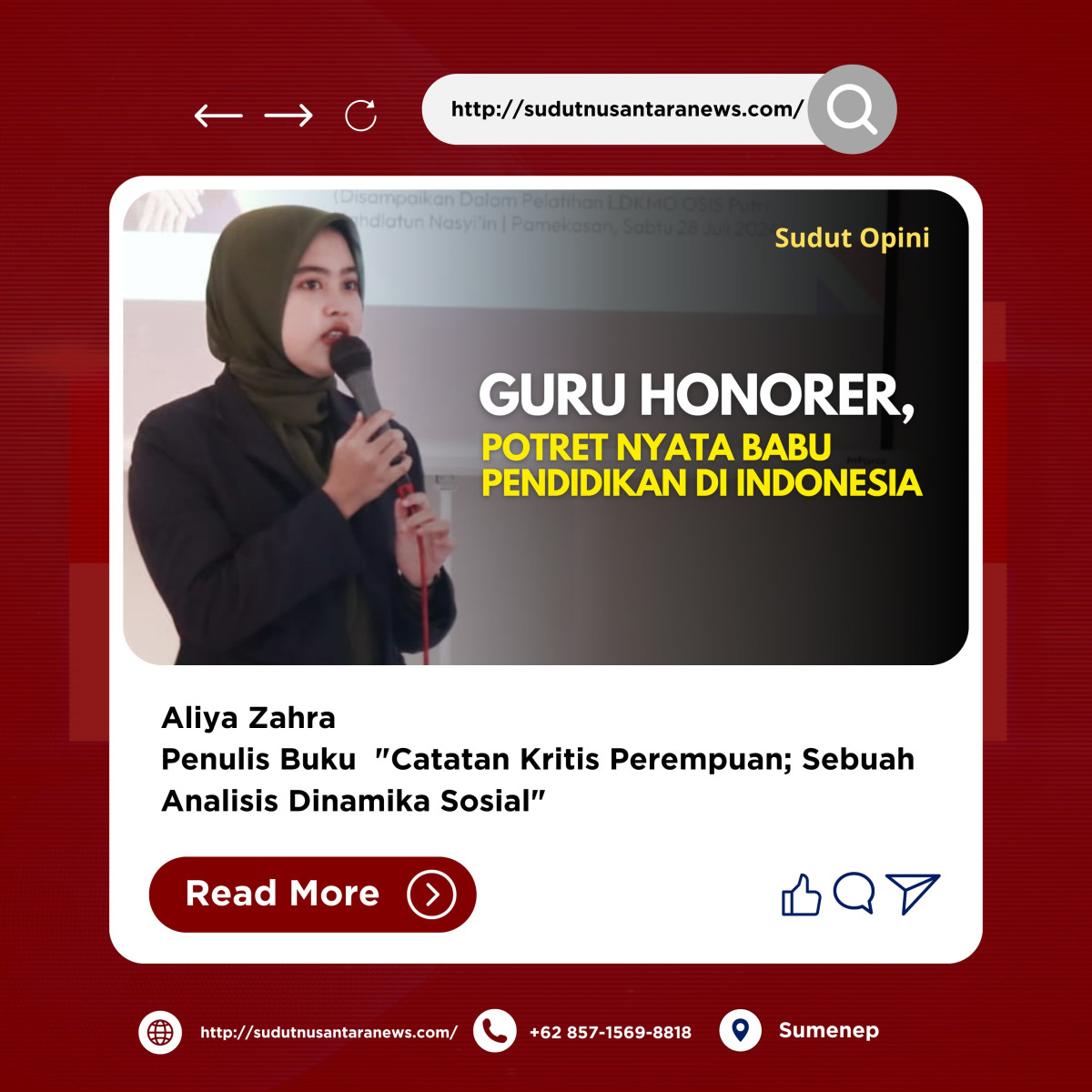 Guru honorer kerap kali dipandang sebelah mata padahal jasanya dalam mencerdaskan bangsa sungguh ikhlas apalagi jika ditelisik pada pelosok-pelosok desa yang masih belum tersentuh kemajuan.