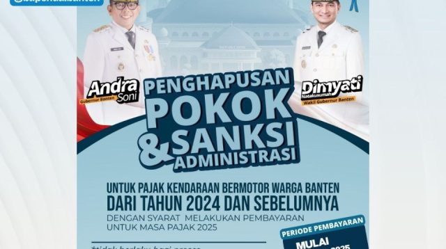 Serang, Sudutnusantaranews.com — Pemerintah Provinsi Banten resmi menghapus pokok pajak dan sanksi administrasi untuk pajak […]