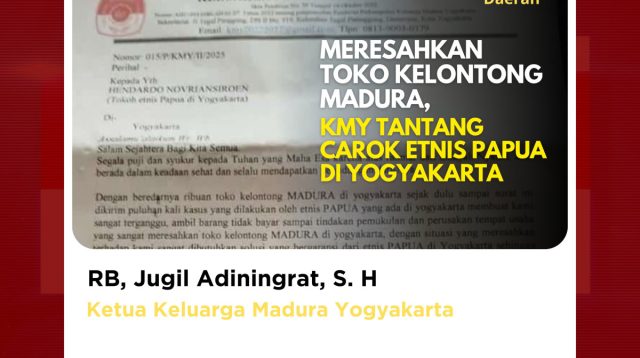 Yogyakarta, Sudutnusantaranews.com — Beredar surat tantangan carok terbuka kepada etnis Papua di Yogyakarta oleh Keluarga […]